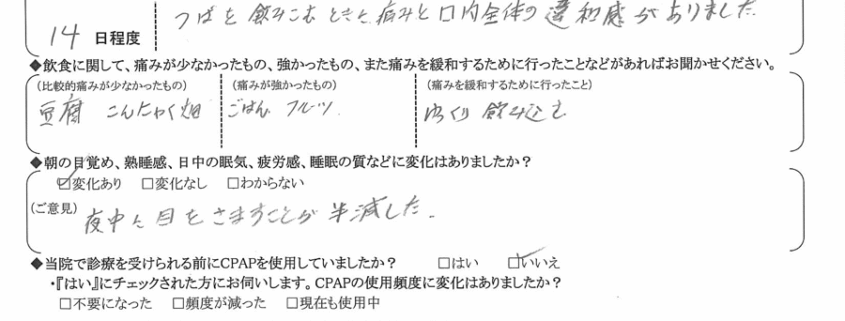 A:(痛みを緩和するために行ったこと) ゆっくり飲み込む