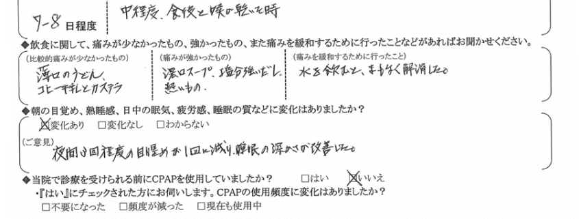 (痛みの程度について) 中程度。食後と喉の渇いた時。
