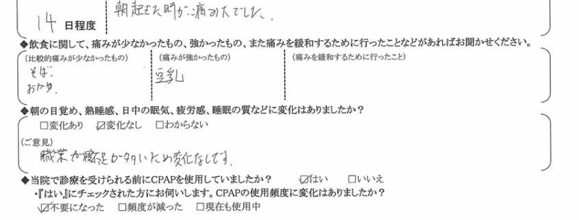 A: CPAPが不要になった事が本当に良かったです。