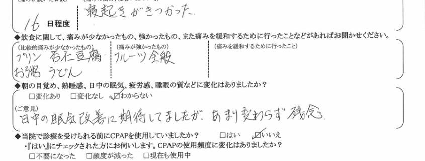 (ご意見) 日中の眠気改善に期待してましたが、あまり変わらず残念。
