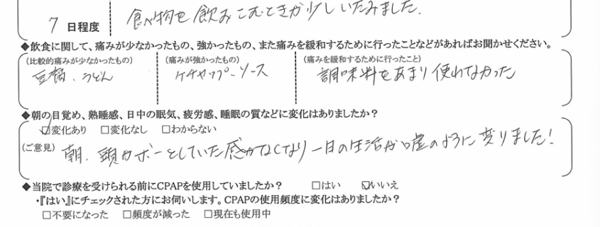 (ご意見) 朝、頭がボーっとしていた感がなくなり、一日の生活が嘘のように変わりました!