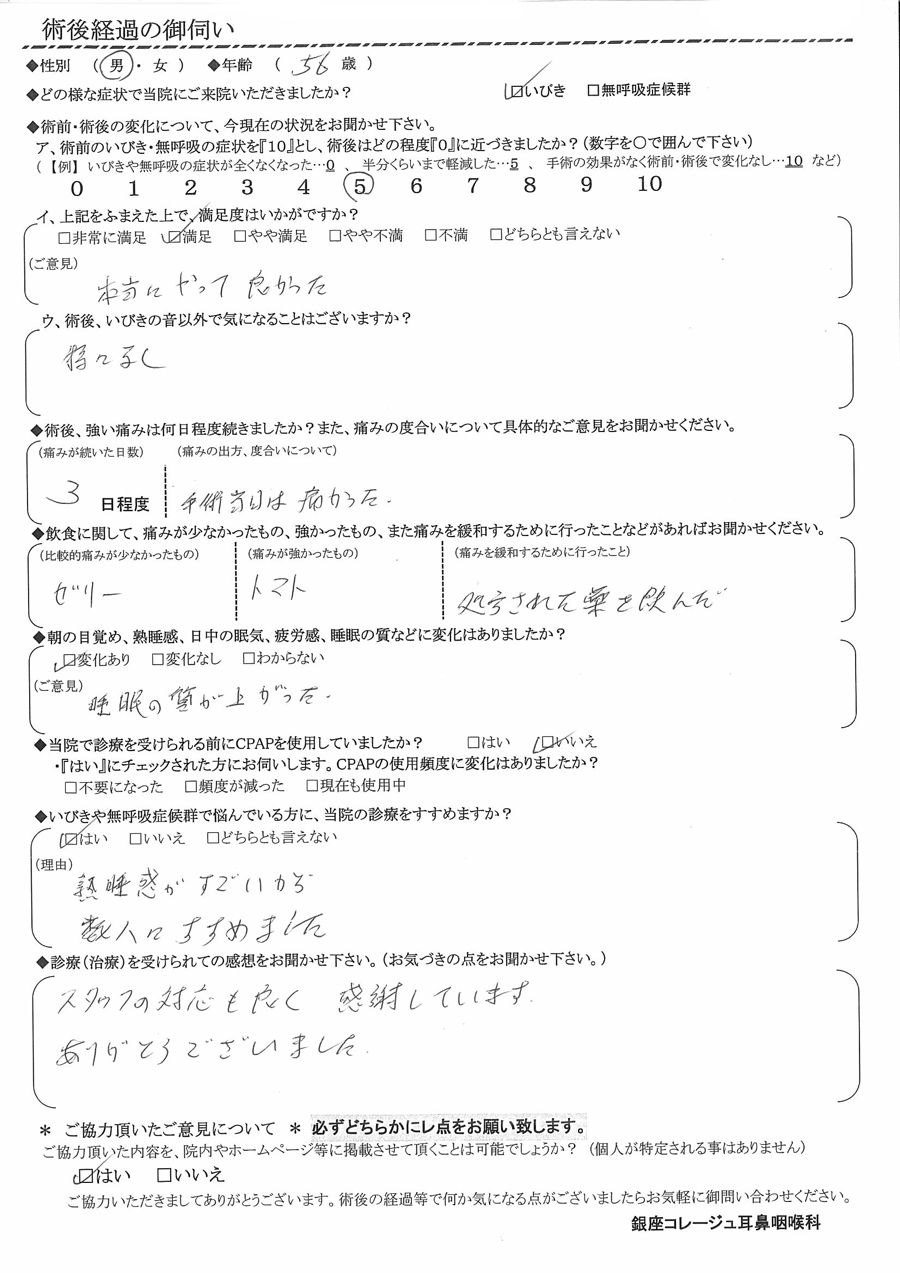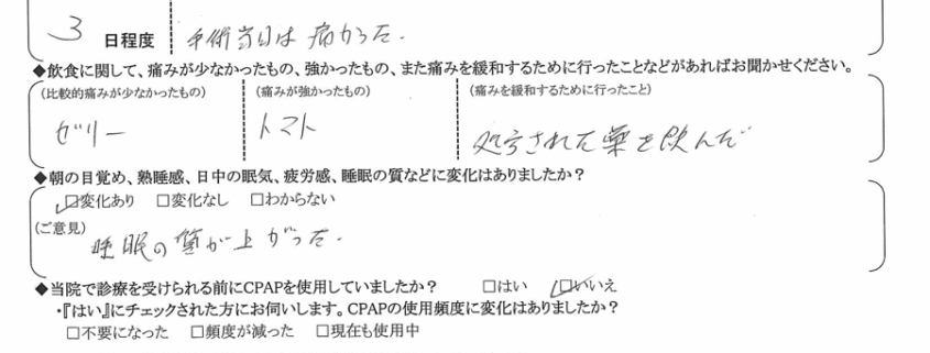 術後の患者様の感想 No.2304