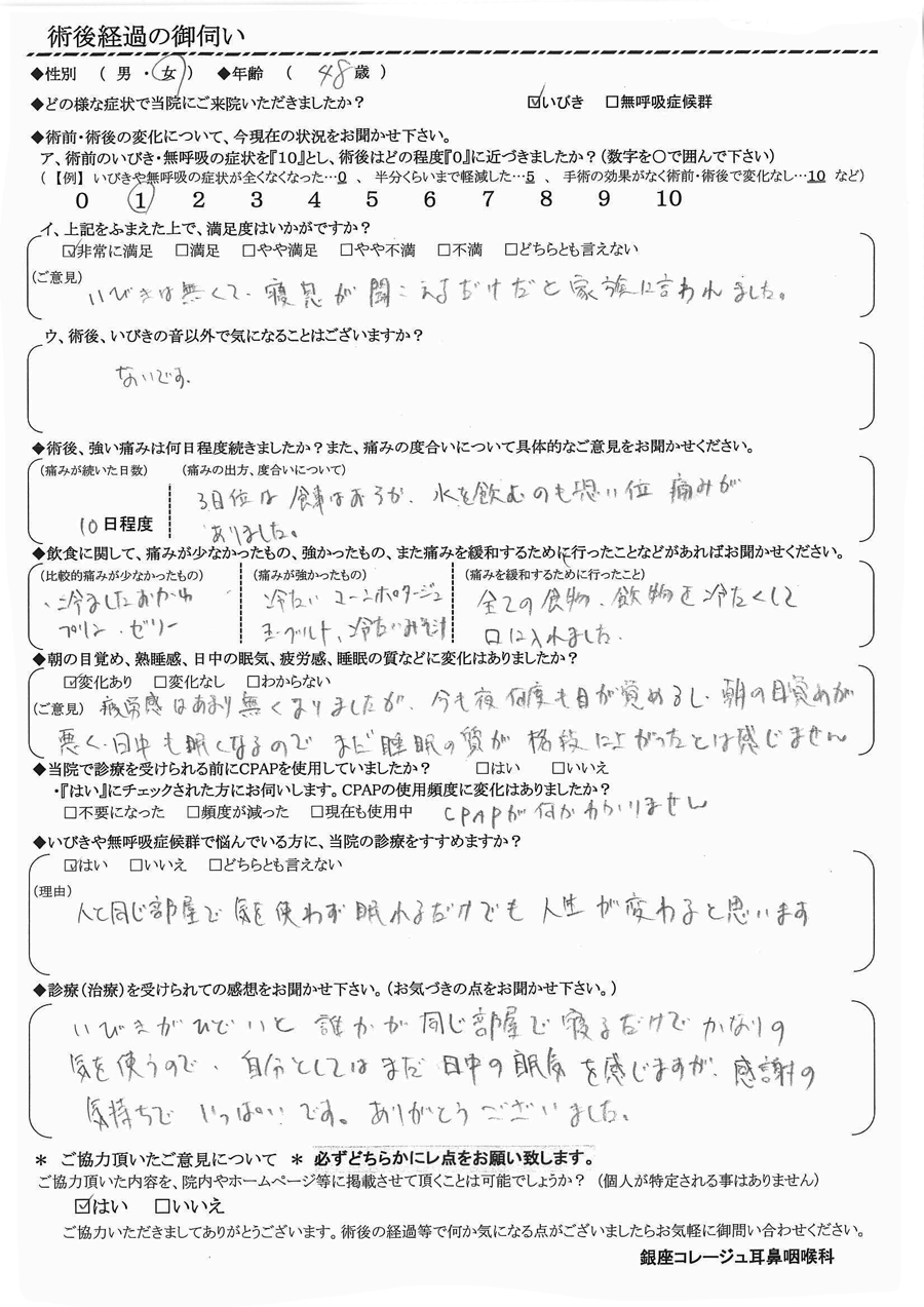 (ご意見) いびきは無くて、寝息が聞こえるだけだと家族に言われました。