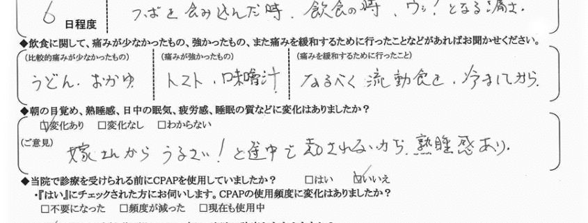A:(痛みを緩和するために行ったこと)  なるべく流動食を冷ましてから。