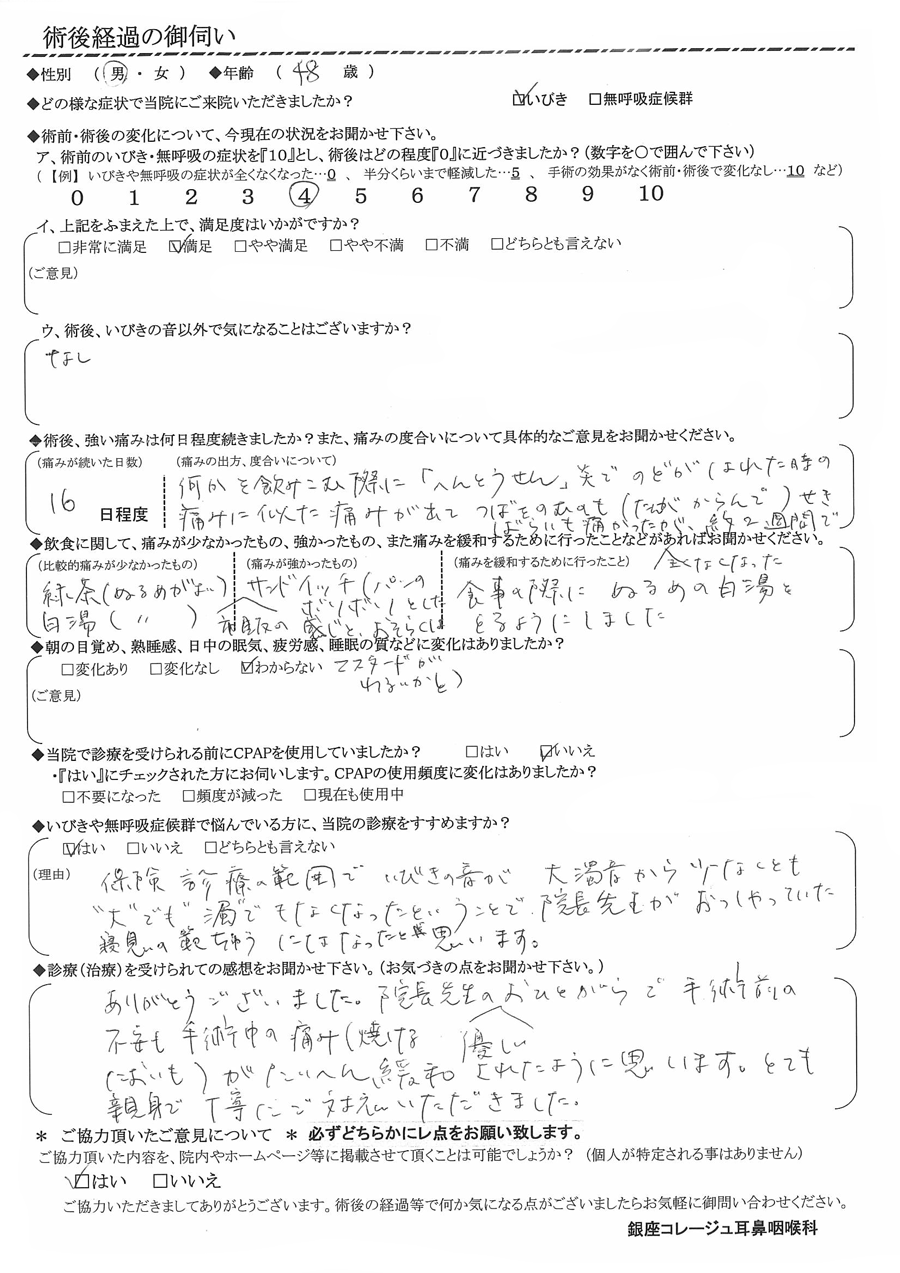 術後の患者様の感想 No.2315
