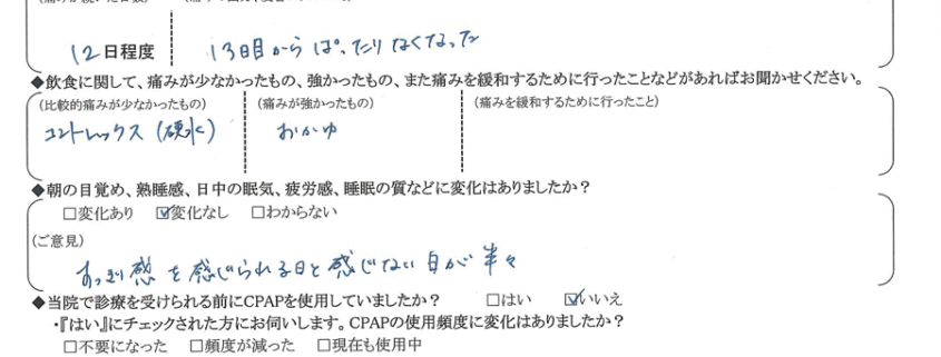 (痛みの程度について)  13日目からパッタリ無くなった。