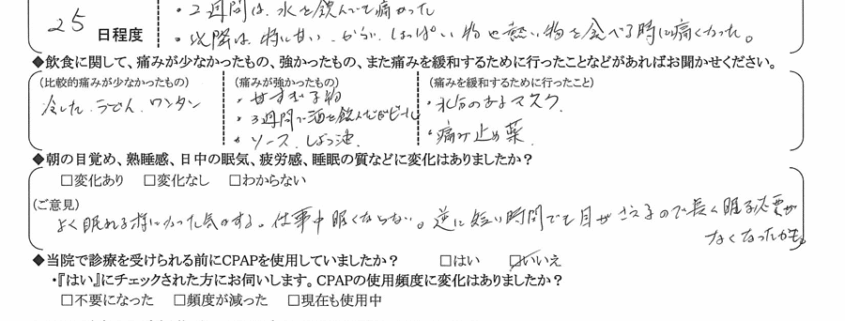 Q.診療(治療)を受けられての感想をお聞かせ下さい。
