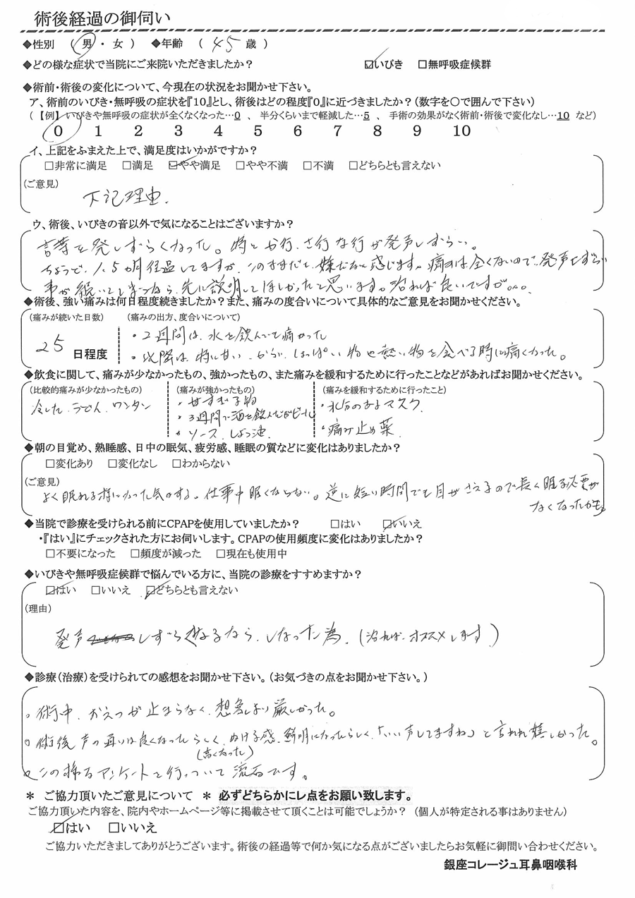 ・術後、声の通りは良くなったらしく(高くなった)、ぬける感、鮮明になったらしく「いい声してますね」と言われ嬉しかった