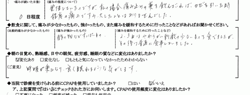 (理由)鼻のレーザーむ受けたのですが、呼吸がとても楽になりました。