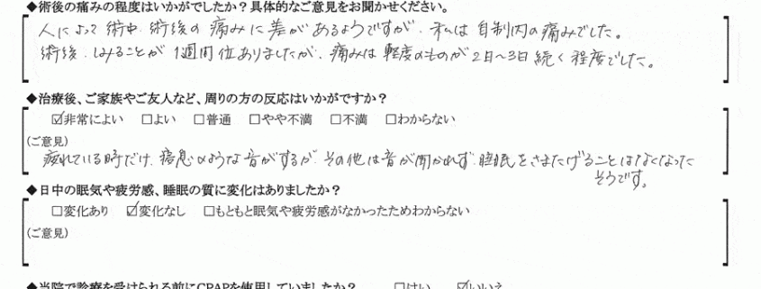 Q.術後の痛みの程度はいかがでしたか?具体的なご意見をお聞かせください。