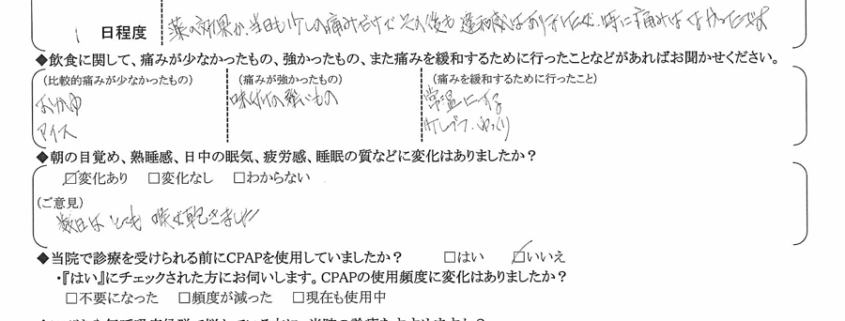 (ご意見)  やはり、個人差はありますね。ただ、以前のような音のいびきは無くなりました。