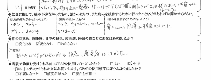 (ご意見) もともといびきが酷い時も、眠気・疲労感はなかった。