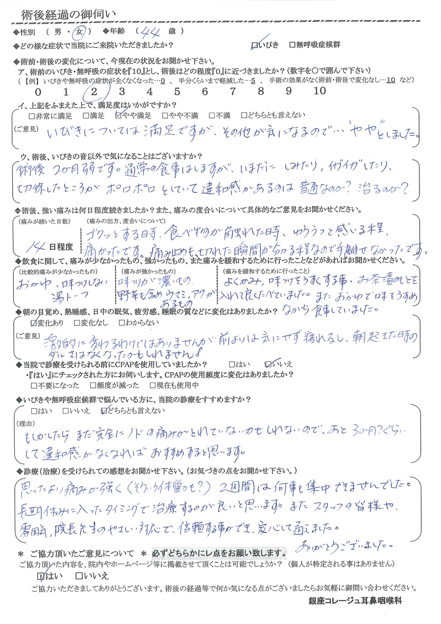 (ご意見)  いびきについては満足ですが、その他が気になるので…“やや”としました。