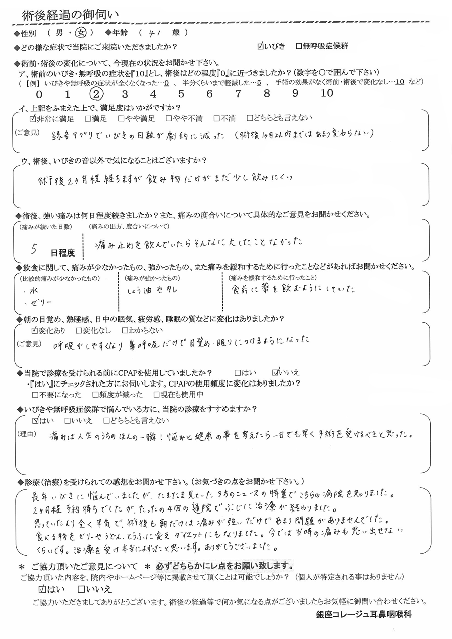 術後の患者様の感想 No.2397