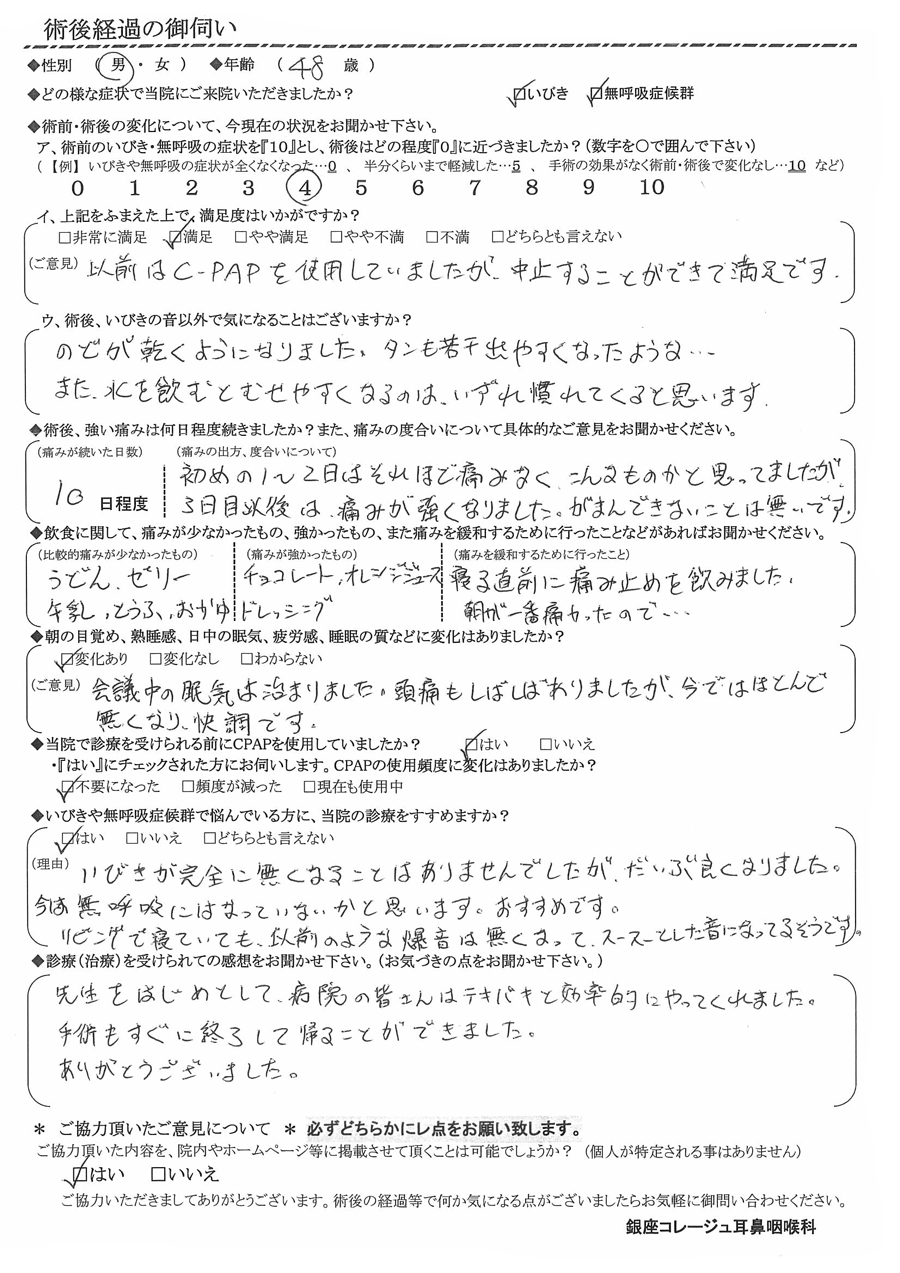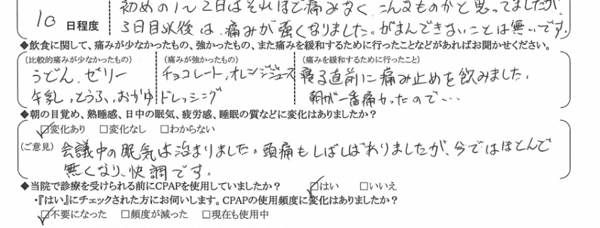 (ご意見) 以前はCPAPを使用していましたが、中止する事ができて満足です。