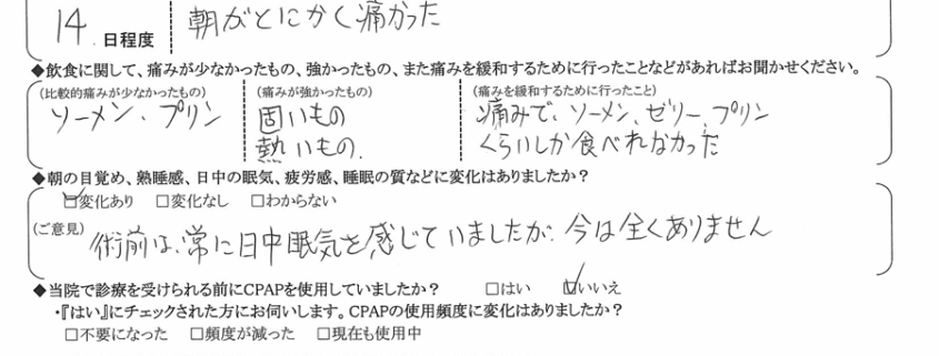(ご意見)  術前は常に日中眠気を感じていましたが、今は全くありません。