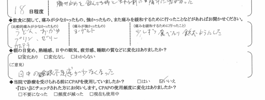 (ご意見)  日中の睡眠不足感が少なくなった。