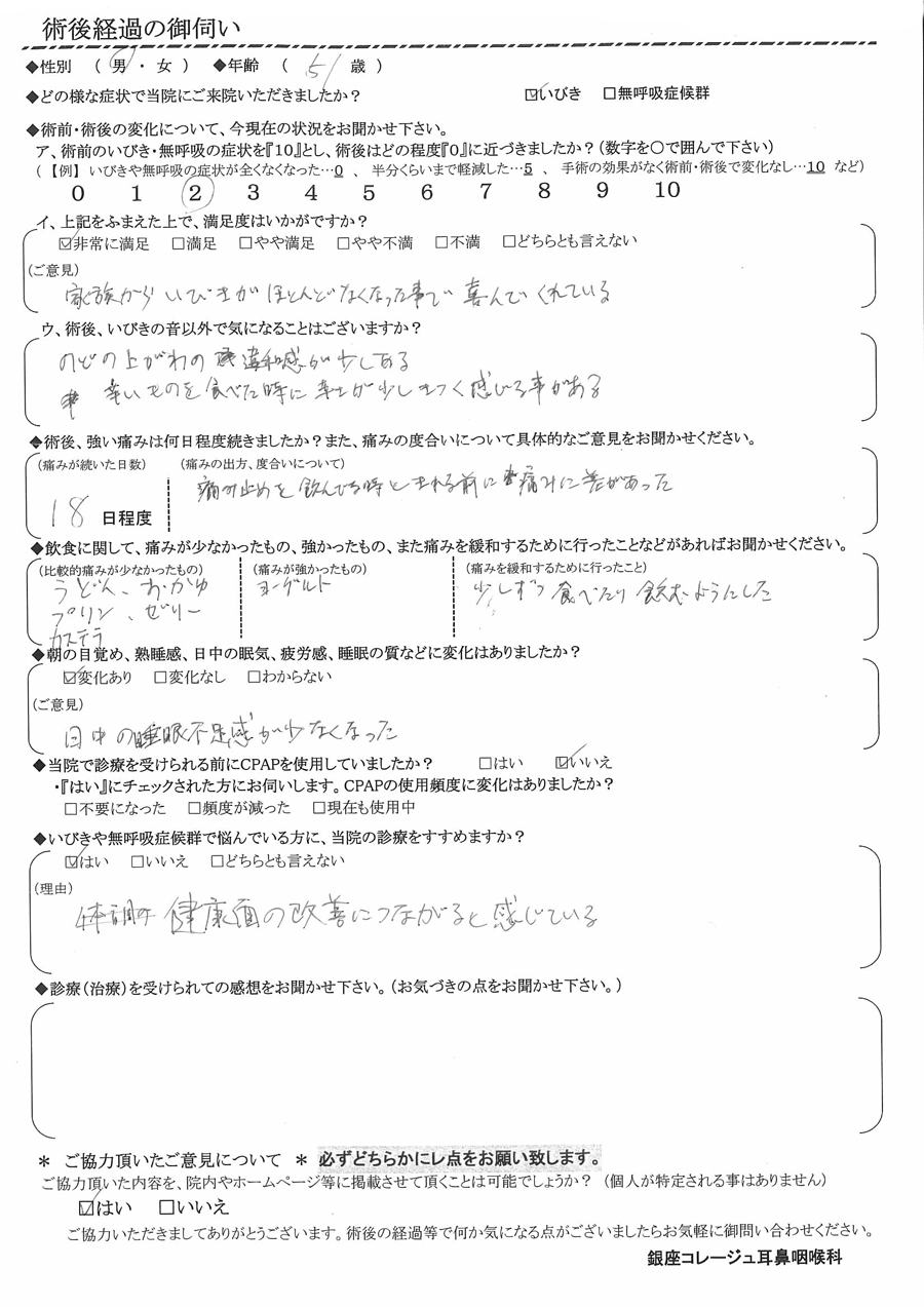(ご意見) 家族から、いびきが殆ど無くなった事で喜んでくれている。