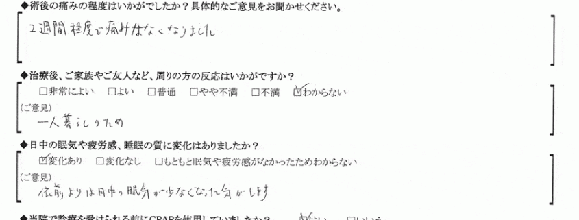 Q.診療(治療)を受けられての感想をお聞かせ下さい。