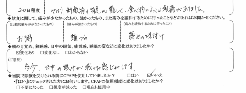 (ご意見) 多少、日中の眠気が減った感じがします。