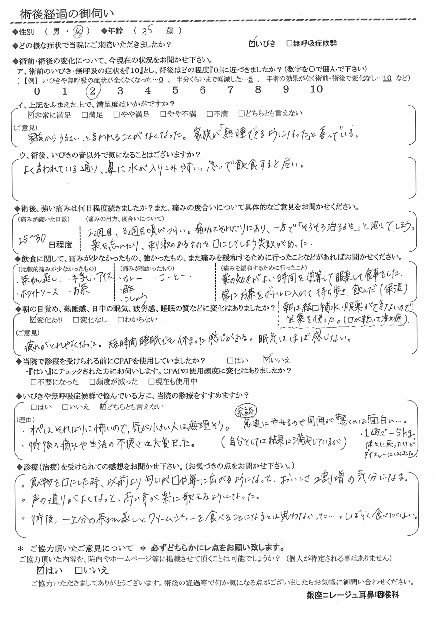 術後の患者様の感想 No.2478