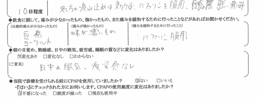 (ご意見) 日中の眠気・疲労感なし。
