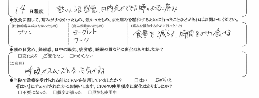 (ご意見) 以前と比べて、いびきの音量が下がっている。