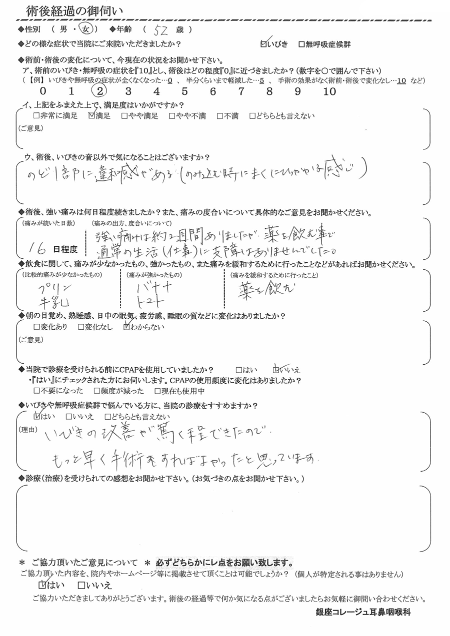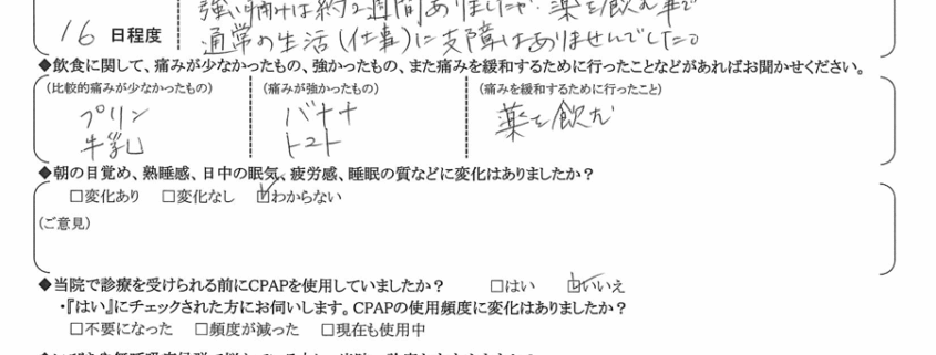 術後の患者様の感想 No.2489