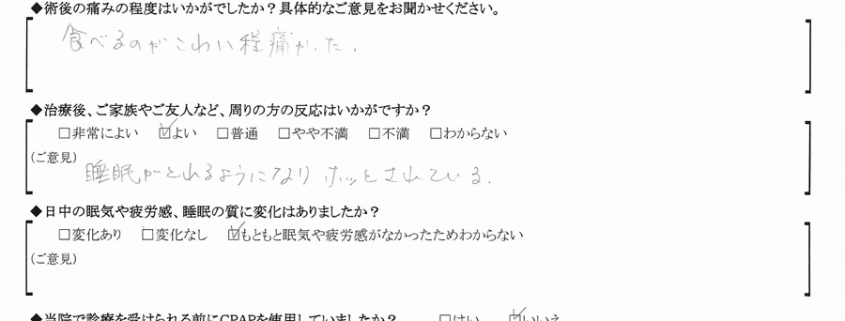 (ご意見) 以前よりは日中の眠気が少なくなった気がします。