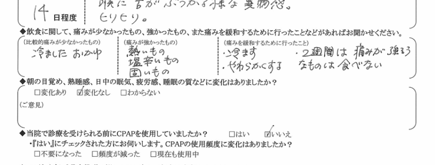 術後の患者様の感想 No.2510