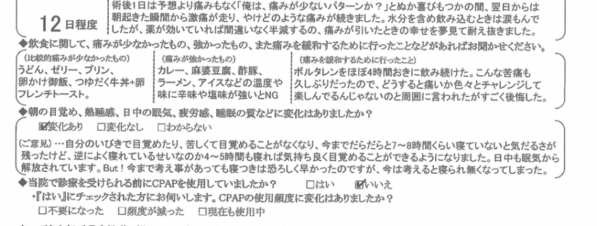 術後の患者様の感想 No.2511