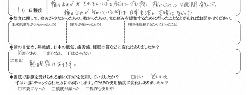 (理由) 術後思っていたよりも痛みが強く、その割にはいびきがあまり変わらないと言われたので。