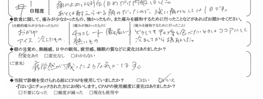 Q.診療(治療)を受けられての感想をお聞かせ下さい。
