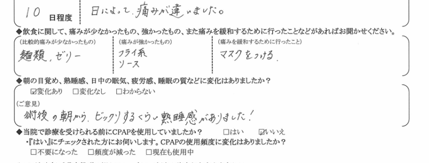 (痛みの程度について) 日によって、痛みが違いました。