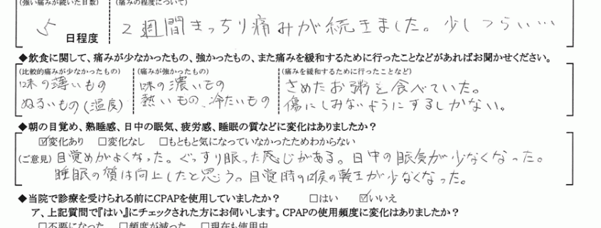 A:食べるのがこわい程痛かった。