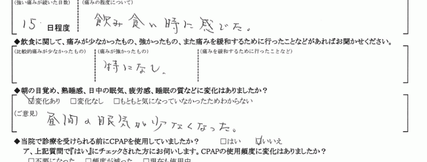 (ご意見) 日中の眠気や疲労感はあまり感じなくなりました。