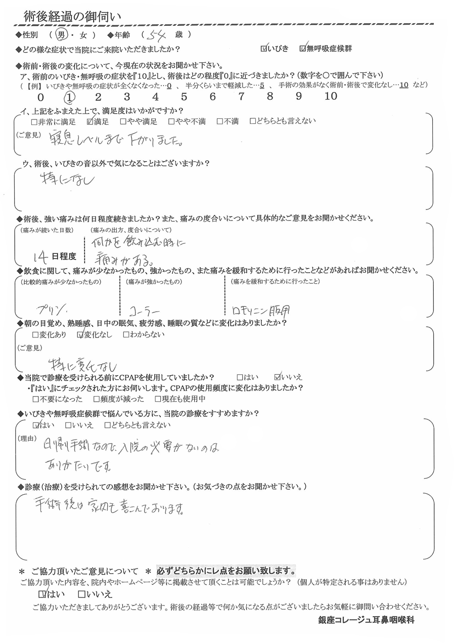 Q.いびき・無呼吸で悩んでいる方に、当院の診療をすすめますか? 理由もお聞かせください。