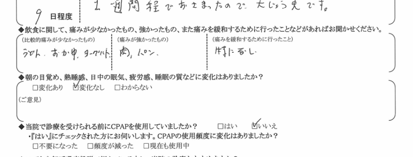 Q.術後、強い痛みは何日程度続きましたか?また、痛みの度合いについて具体的なご意見をお聞かせください。