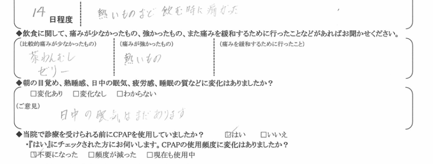 (ご意見) 日中の眠気はまだあります。