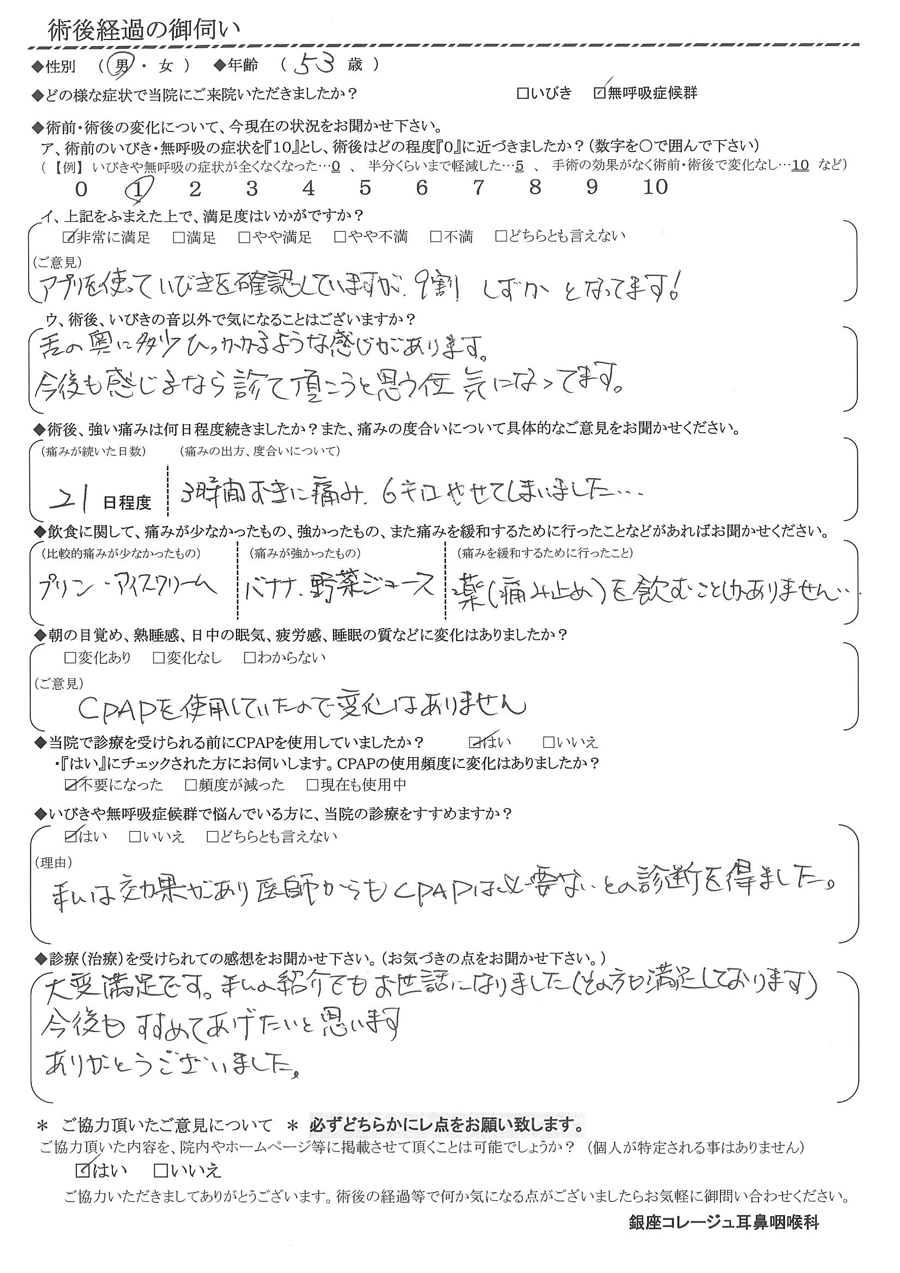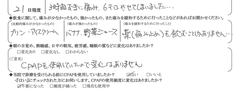 (ご意見) CPAPを使用していたので、変化はありません。