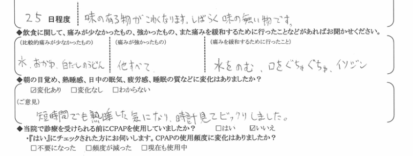 Q.診療(治療)を受けられての感想をお聞かせ下さい。