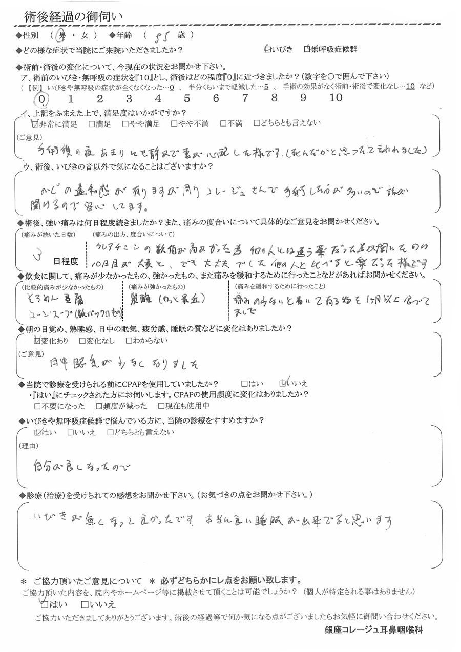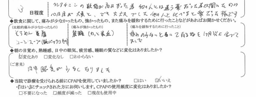 A: いびきが無くなって良かったです。本当に良い睡眠が出来てると思います。