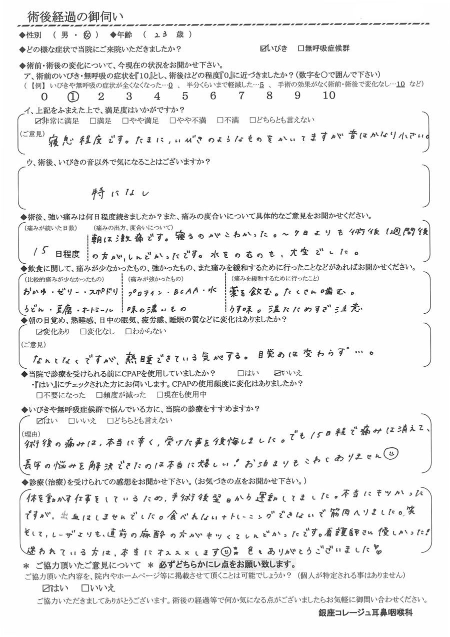 術後の患者様の感想 No. 2644