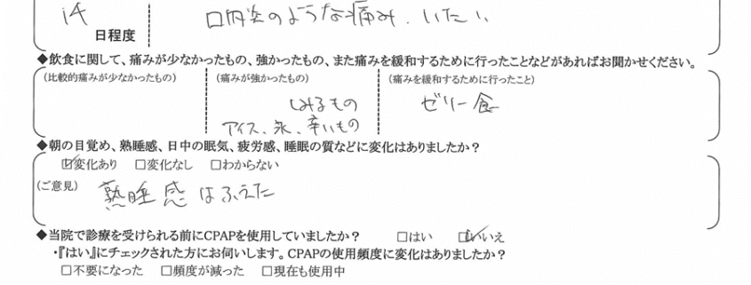 (痛みの程度について)  口内炎のような痛み。痛い。