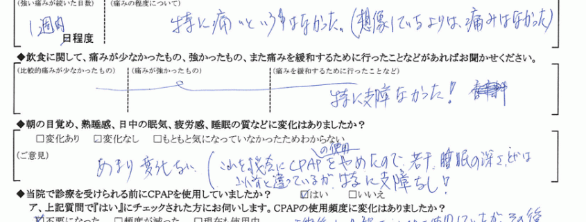 Q.術後、強い痛みは何日程度続きましたか?また、痛みの度合いについて具体的なご意見をお聞かせください。