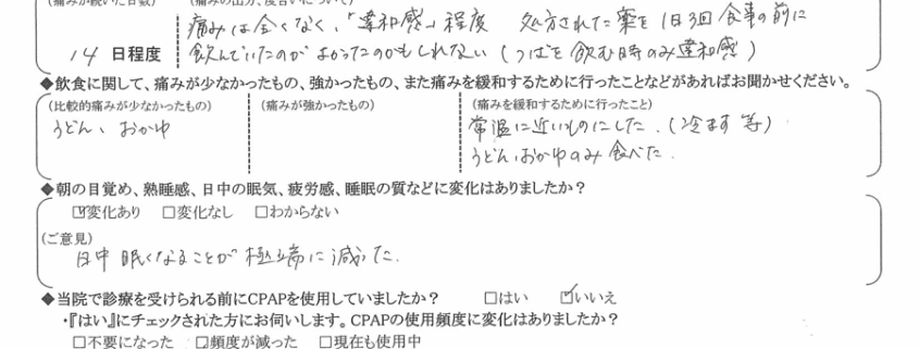 (ご意見)  日中眠くなることが極端に減った。
