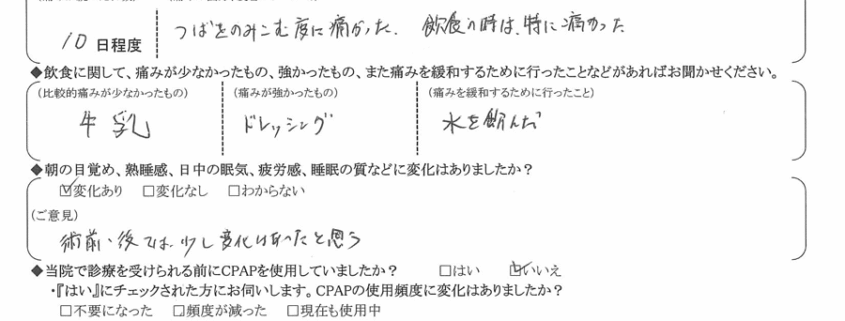 術後の患者様の感想 No. 2661
