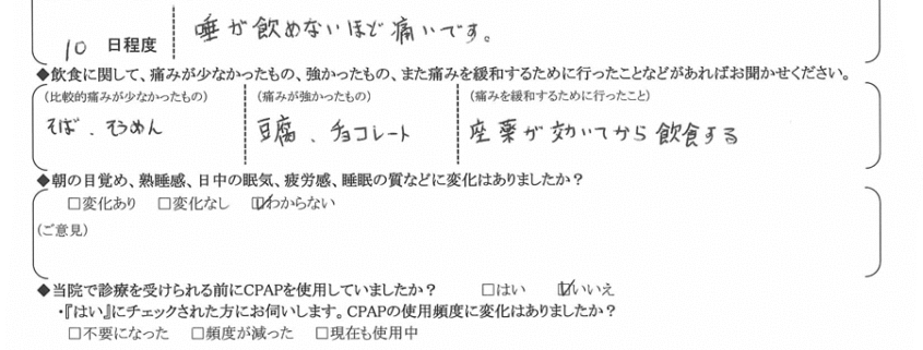 (痛みの出方、度合いについて) 唾が飲めないほど痛いです。