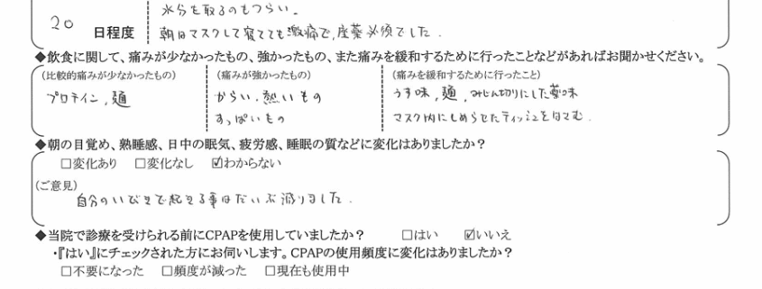 (ご意見) 自分のいびきで起きる事はだいぶ減りました。