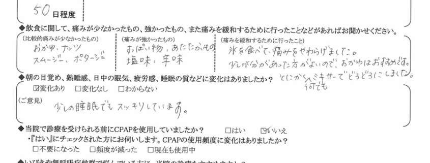 Q.診療(治療)を受けられての感想をお聞かせ下さい。